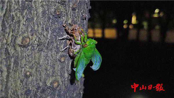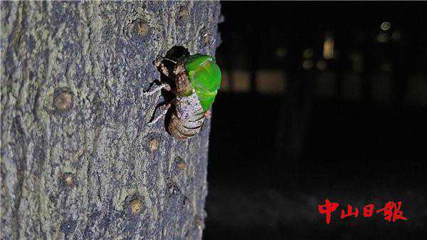 这个月份在紫马岭公园羽化的很多都是薄翅蝉。为了避免在羽化时遭到天敌袭击或其他干扰,薄翅蝉一般选择夜间蜕皮羽化。
