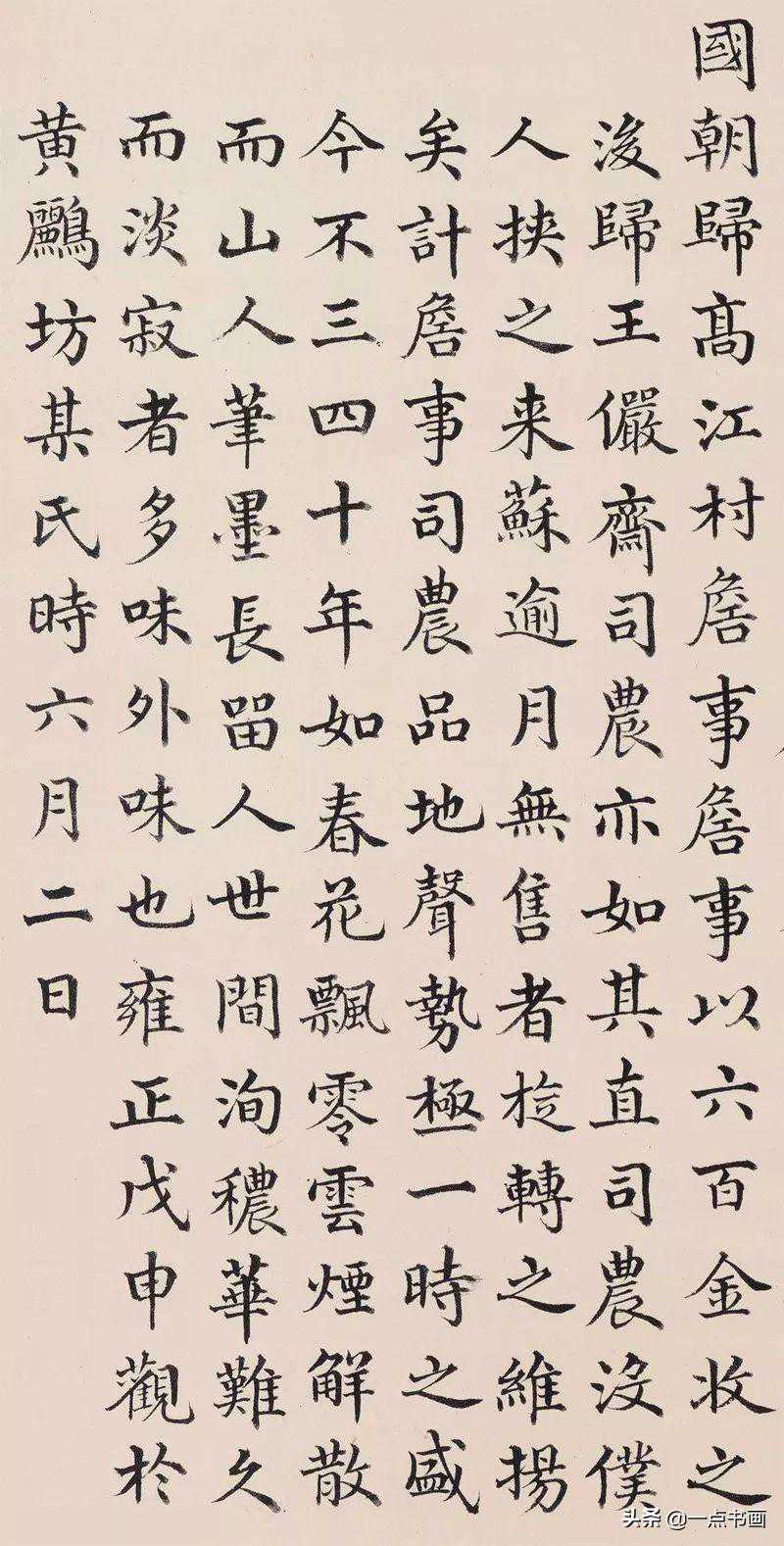 金士松楷书《跋黄公望富春山居图卷》,纸本,台北故宫博物院藏。此帖出于颜体,结体端庄秀美,笔意潇洒灵动,于飘逸中见稳妥,于典雅中见遒劲,不失为楷书精品之作。