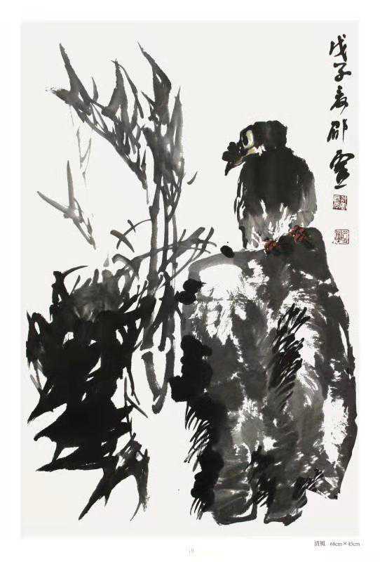 邵灵先生以花鸟鸣世,即承继齐派写意之风范,又对吴门及传人潘天寿技法用心颇多,继而溯其上追慕青藤、石涛、八大乃至扬州八怪之笔墨韵致中的胆敢独造、泼辣纵横及独抒人生之精华,借花鸟以写灵,鉴山水以抒情,依金石以磨砺志气,在岁月的变换中创作出一批批具有鲜明特色的艺术精品来。