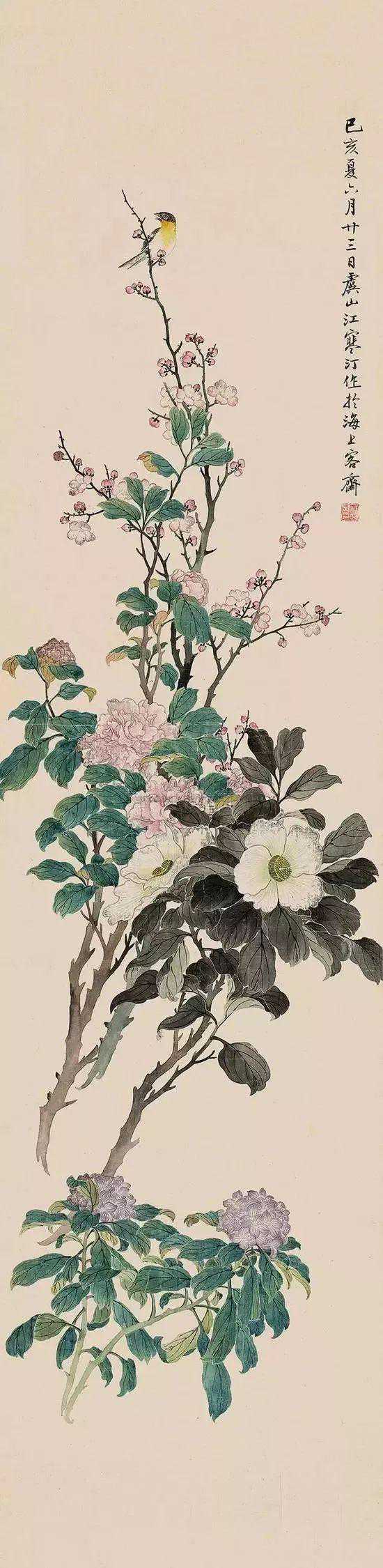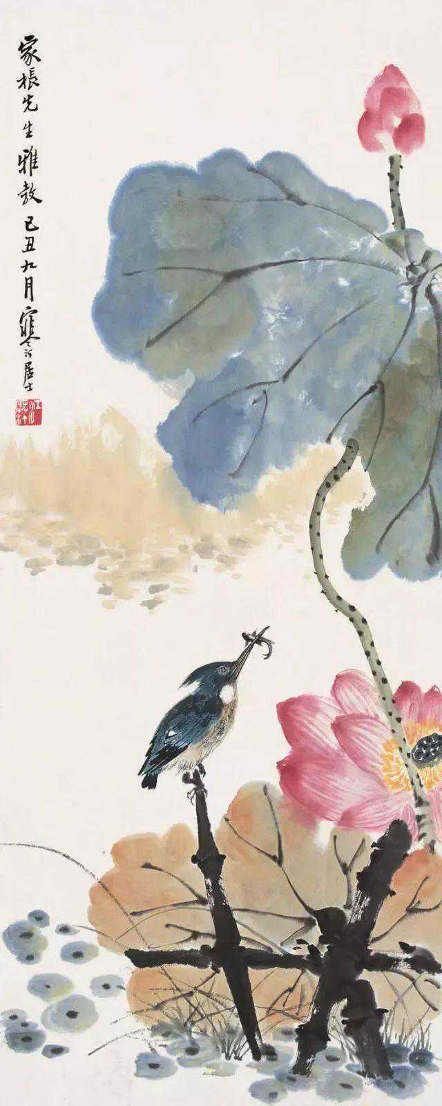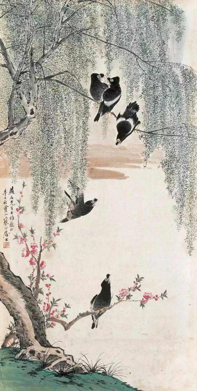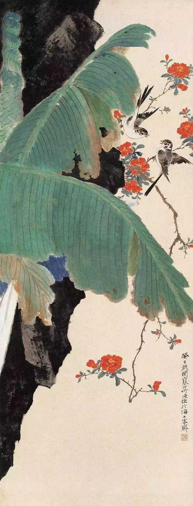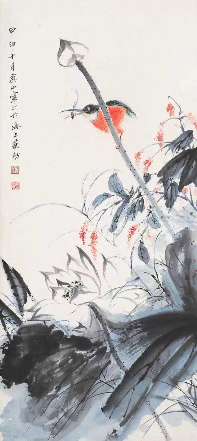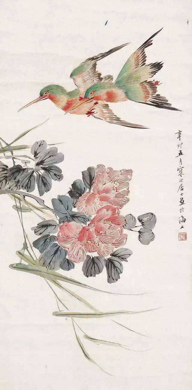 父亲二十八岁时开始专业绘画。祖父去世后,父亲家累太重,便流寓沪上,以卖画为生。此时父亲结识了几位很有名的收藏家,与他们交往密切,得以纵观私人收藏的历代名家之作。父亲视野拓宽之余,勤学苦练。他深入研究宋元以来各派名家花鸟画技法,同时着重写生,两者互为参悟,再经过自己的消化,所以无论双钩、填彩、没骨写生,均颇有心得,尤擅画禽鸟,即便信手拈来,随意挥写,都能形神毕肖,栩栩如生。