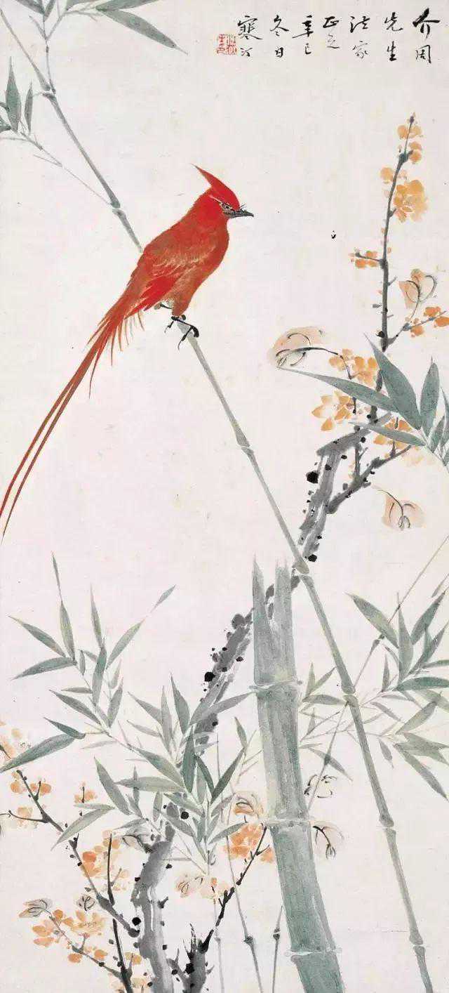 父亲养鸟用心之专,令人惊叹!当时师兄们常跟我闹着玩说:“老师喜欢的不是你,而是那只长尾巴。”说真的,当时我还真有点妒忌那只长尾巴的鸟,在我幼小的心灵上似乎受不了。后来我才知道这长尾巴的鸟就是唐山鹊。上海画院成立后,为了让画家对禽鸟有更多的感性认识,特地在画院的一角上,建立个高大的铁笼,里面有各种禽鸟。父亲将自己家中的几十种鸟和鸟笼一起送进这禽鸟天地中,并且和几位著名画家如吴湖帆、来楚生、张大壮、张聿光等主动承担喂养任务。时隔不久父亲与这几位画家相继创作了一批可贵的花鸟画作品。