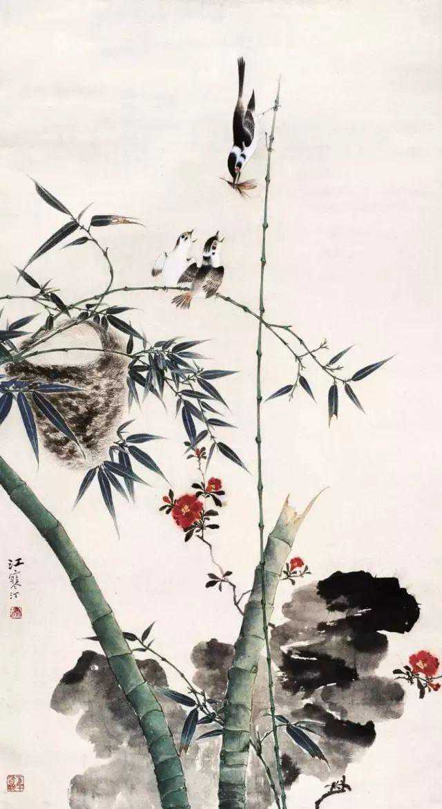 我的父亲江寒汀1904年出生于江苏常熟虞山镇东城脚二十四号。祖父一生清贫,除了给我父亲两兄弟留下一幢二开间的旧楼房之外,就什么也没有了。听母亲说,父亲自幼喜爱画图、养鸟,十六岁便师从陶松溪先生学习花鸟画。从此常游虞山,山鸟活动得以饱览。饥则啃干粮,渴则饮山泉,必待夕阳衔山,方步行返城。回家后,首先摊开纸作画,众鸟情态跃然纸上。