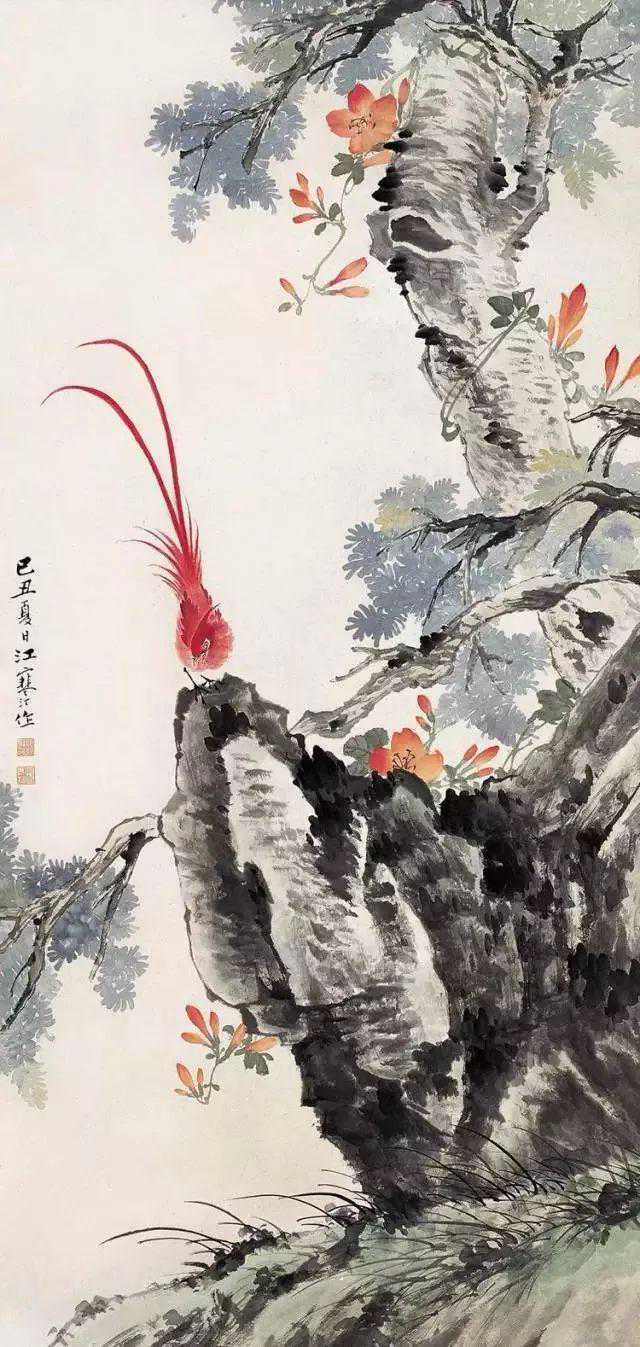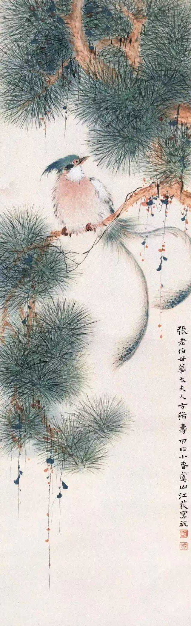 这一幕正好给一家店主的儿子看到,认出了我是江寒汀的女儿,便陪我一路返回找到父亲。谁知父亲居然还在津津有味地谈论着长尾巴的鸟,丝毫也没发觉自己最喜欢的小女儿走失了。那位领我回来的青年,就是后来也跟父亲学画的哑巴师兄赵观祥。父亲将这长尾巴的鸟带回家后,亲自喂养,精心调配食物,用煮熟的鸡蛋黄拌小粟子后再喂用,还用小刷子轻轻地刷洗鸟尾上的羽毛。日子长了,这只长尾巴的鸟似乎被驯服了,和父亲有了感情,每天叫声不绝,极动听。