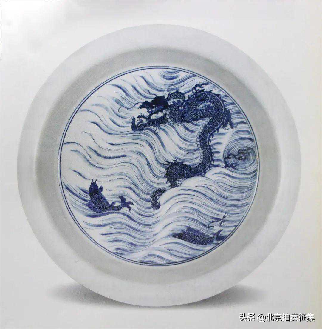 ▲北京故宫博物院藏清康熙青花鱼化龙纹折沿洗
