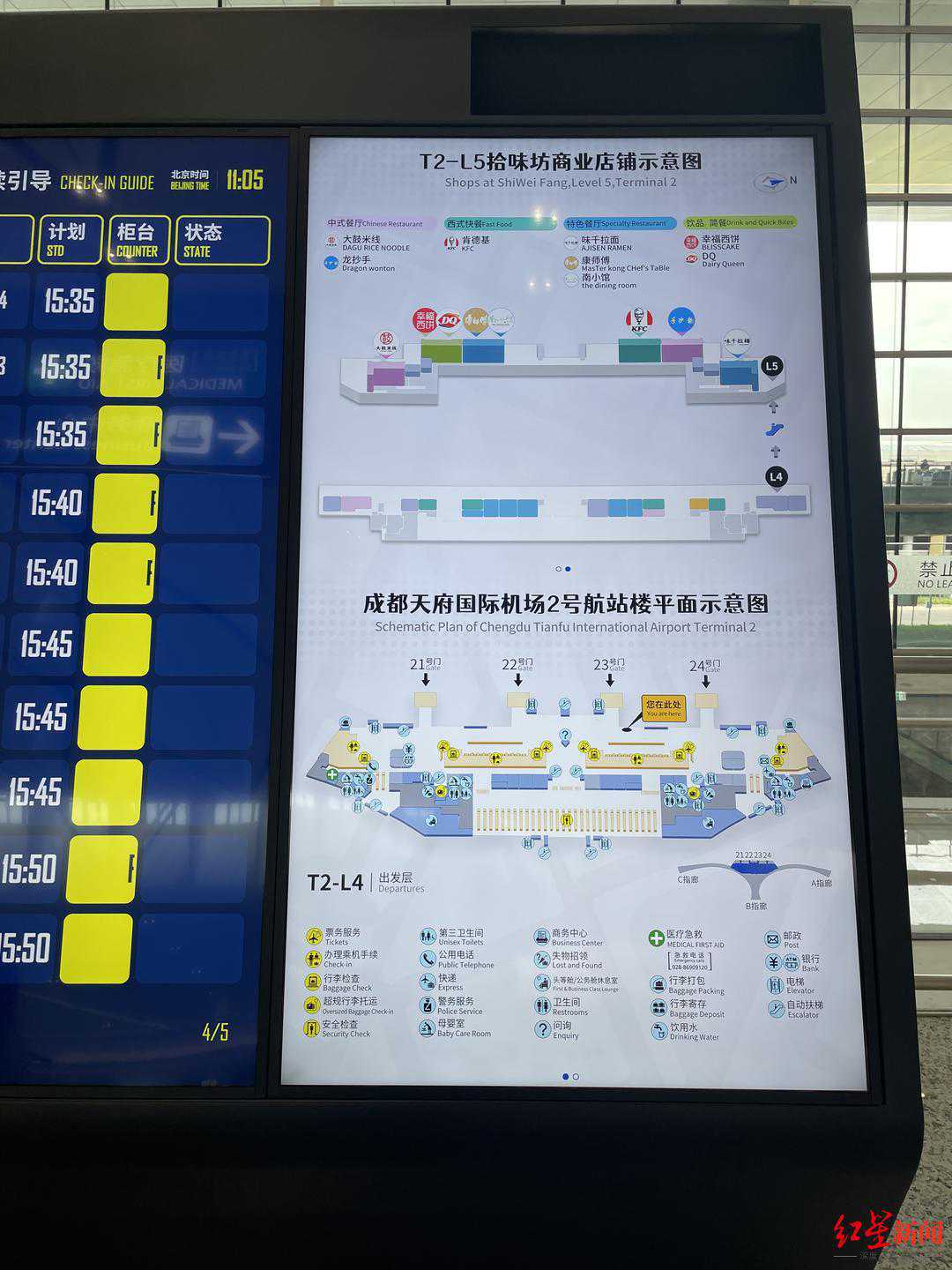红星新闻记者特别制作了一份天府国际机场服务攻略,从餐饮、医疗、卫生间、母婴室,到自助值机、托运、转航站楼,天府国际机场的10种服务“密码”,我们都摸清楚了!