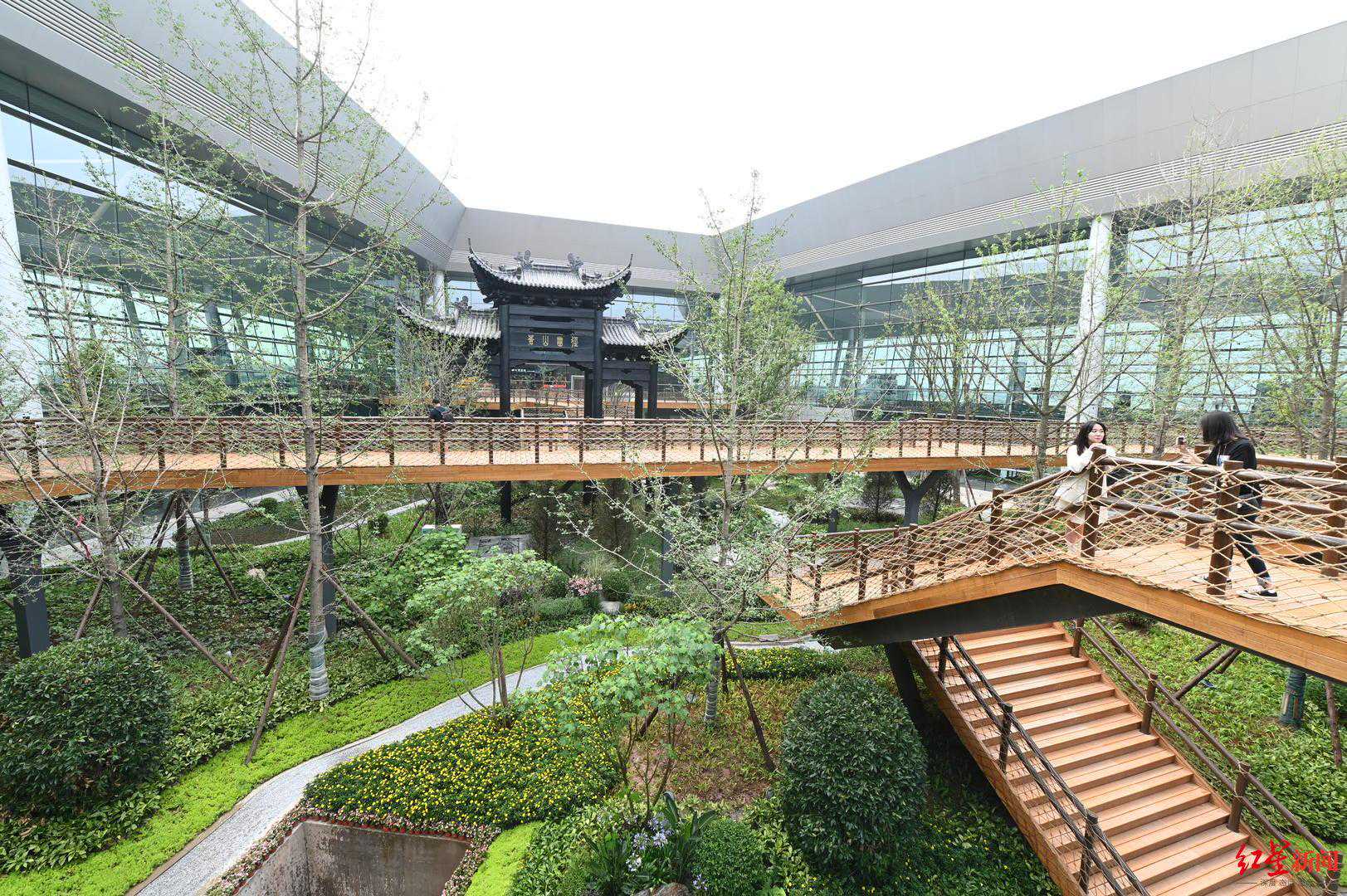庭院作为机场建筑的一大亮点,也是文化建设的重要载体。据介绍,在T1、T2航站楼内共有12座庭院,以“草堂、雅舍、逸居、味府、乐园、竹韵”为主题的6座参与性庭院和以“春、夏、秋、冬”为主题的4座观赏性庭院,还有以“锦绣蜀山”“青城幽径”为主题的2座观赏、参与性兼备的核心庭院。