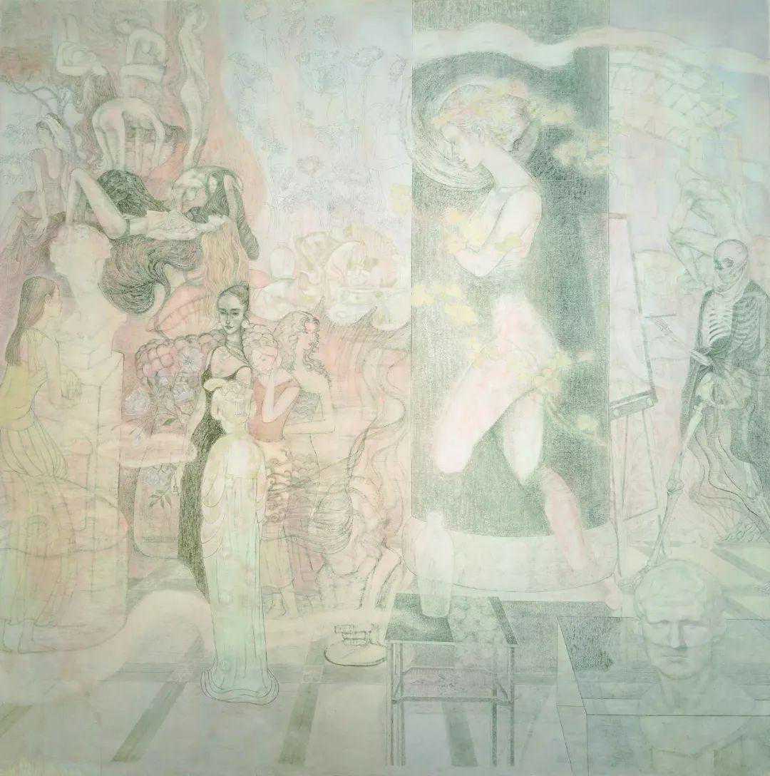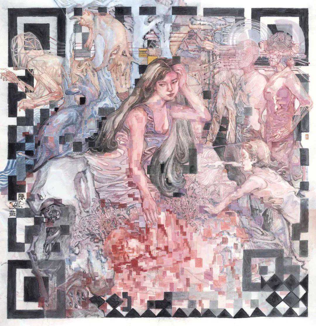 魏佳琳《巴别塔》绢本设色170cmx170cm