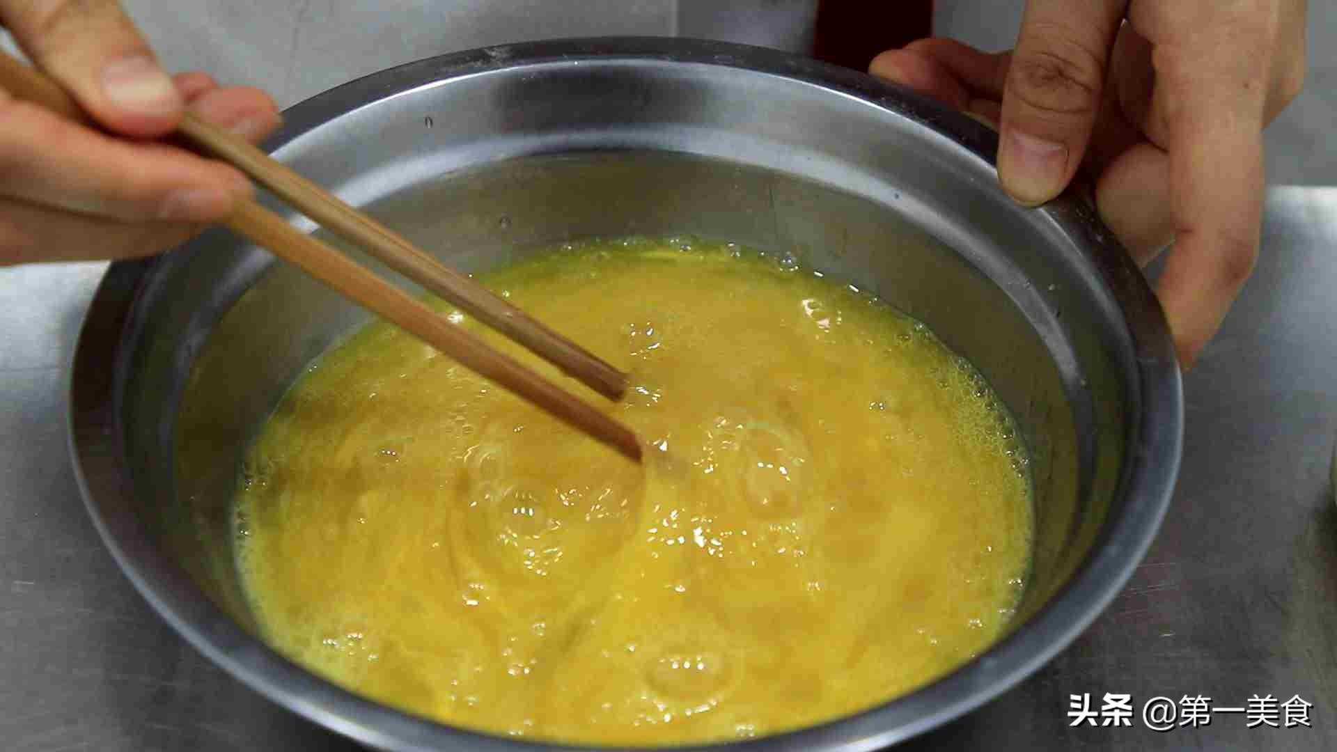 1.首先,准备一个小盆打入4个鸡蛋,加入食盐2克、白糖80克,用筷子快速把鸡蛋打散,一直打到把白糖化开为止,这一步比较累人,可以借助工具。