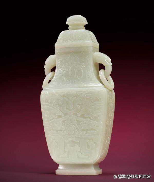 520十八世纪白玉寿字双凤耳盖瓶