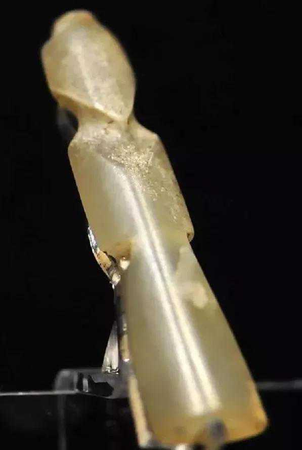 刚卯严卯是汉代独有的一种佩玉,一般成对出现,均作小方柱形,一般长约2厘米,宽约1厘米,玉器上下穿孔贯通,以穿丝带佩戴之用,但是当时的古人具体是如何佩戴它们的,并没有文献记载。