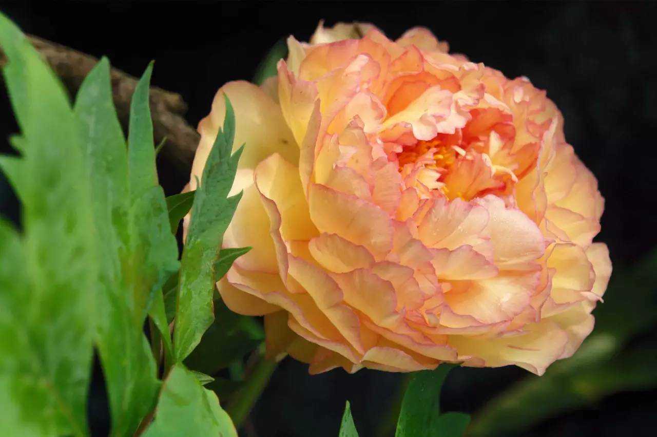 金阁花复色金黄,台阁型,金黄艳丽又具有柠檬香味,所以被称为牡丹中的“金粉佳人”,而在彭州又被称为“金发丽人”。