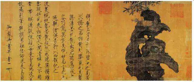 赵佶《祥龙石图》,楷书,绢本,设色,后期风格,北京故宫博物院藏。