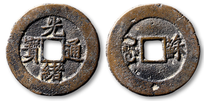清“光绪通宝”背满汉“云”小字版套子钱一枚,直径:26.5mm,极美品