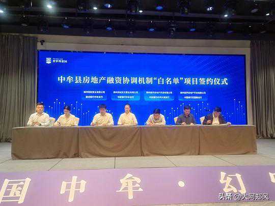 签约仪式上,普罗地产、翔隆置业等中牟县房地产“白名单”企业先后与中原银行、中国银行、郑州银行管城支行、交通银行经三路支行、建设银行中牟支行、农业银行等金融机构现场签约。据悉,此次签约是中牟县促进房地产市场平稳健康发展的重要举措。