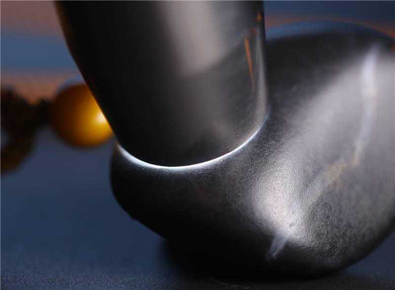 全黑墨玉籽料可谓是弥足珍贵的,它在这个圈子的地位是无人可以否定的,妥妥的正统嫡长子。全黑纯墨,黑如纯漆且分布均匀,外观光洁典雅,玉质细腻油润。