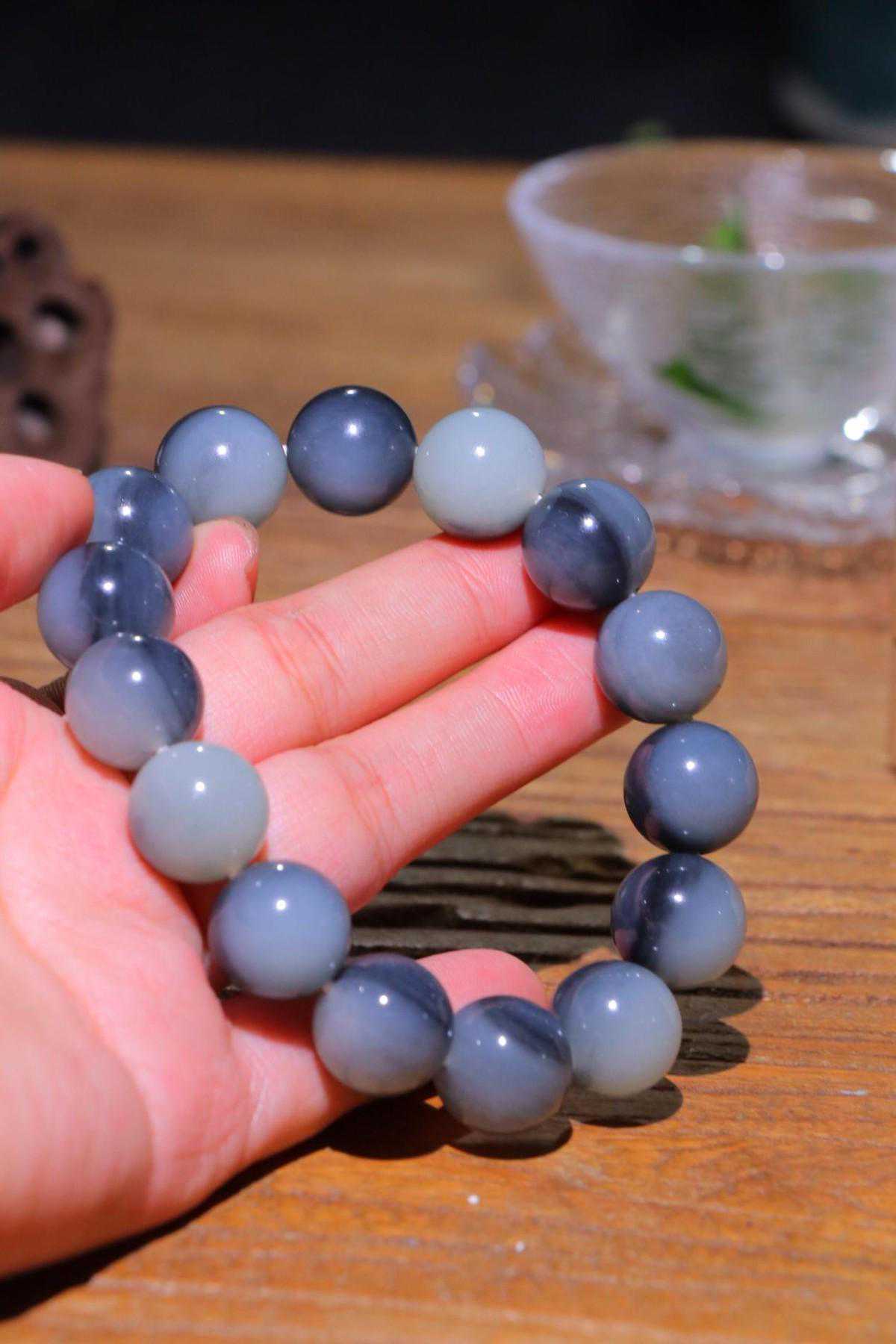 聚墨表现出来的就是黑白相间,或云雾状或者条带状黑纹,因为内部呈现出青花色,所以也称青花玉。目前市场上,青花墨玉还是最为常见的。