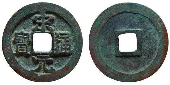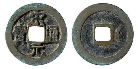 宋元通宝,是中国古代钱币的一种。为宋开国钱,是宋代的第一种铸钱,业内称为“宋老大”,所以也是配“大五帝钱”中的一个。“宋元通宝”也可旋读为“宋通元宝”。太祖赵匡胤建隆元年(公元960年)始铸。宋史•志第一百三十三食货下二钱币:"太祖初铸钱,文曰「宋通元宝」。"外圆内方,钱文仿八分书(隶书),形制仿唐开元,钱式沿袭"周元通宝"成规,为小平钱。钱文对读,是国号加宝文的国号钱。宋”即指国号大宋,“元”即创始之意,“通宝”即通行宝货,只见小平钱。