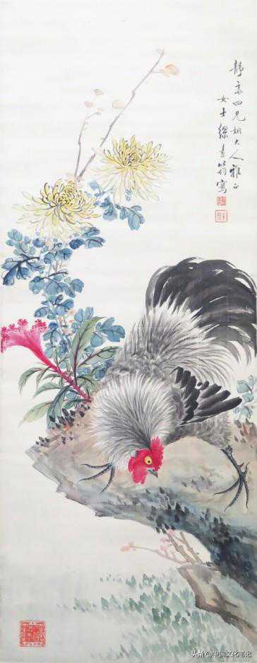 清代,缪嘉惠,雄鸡图轴,绢本设色,云南省博物馆藏