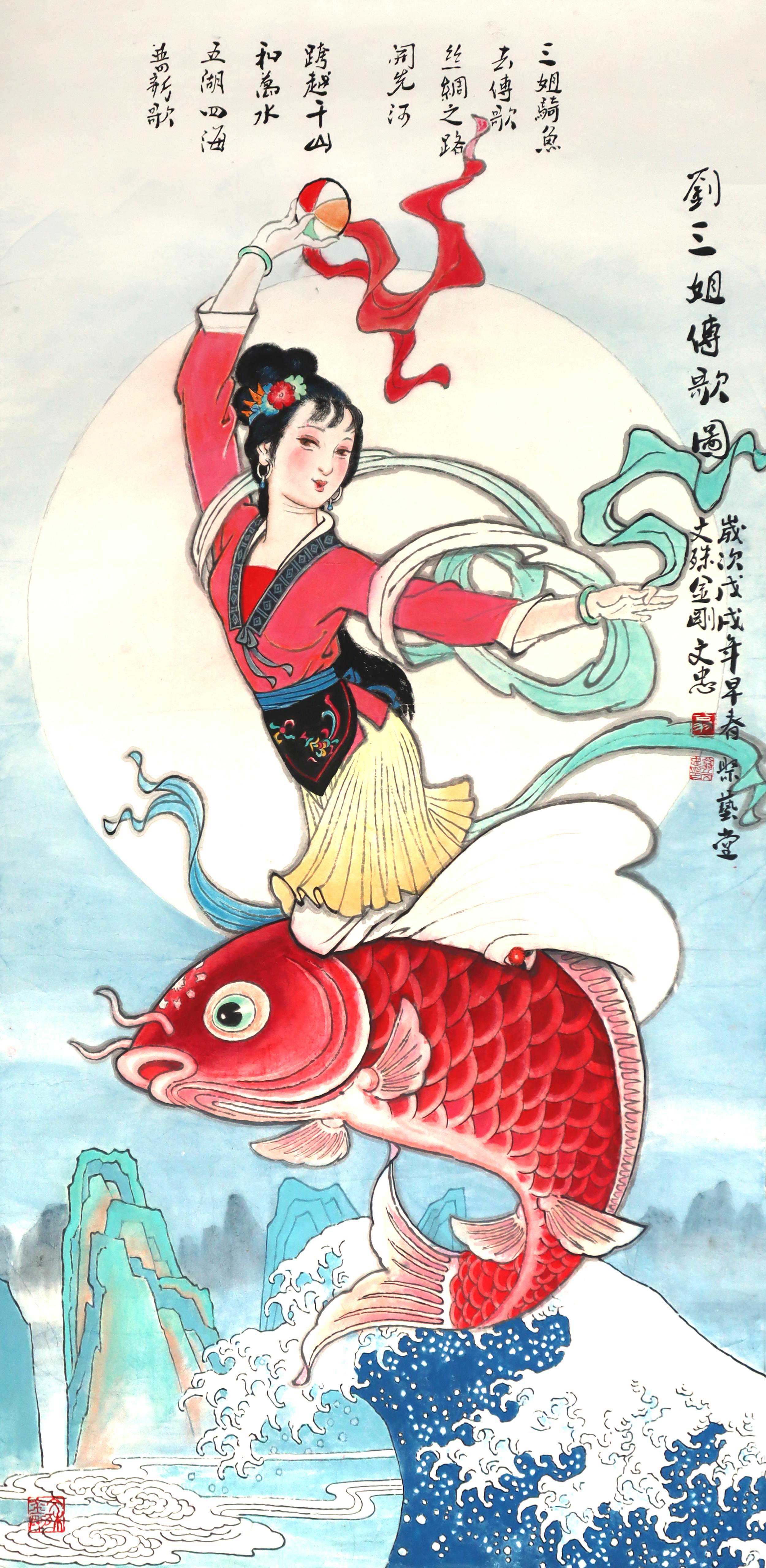 刘三姐传歌图139×68cm2018年