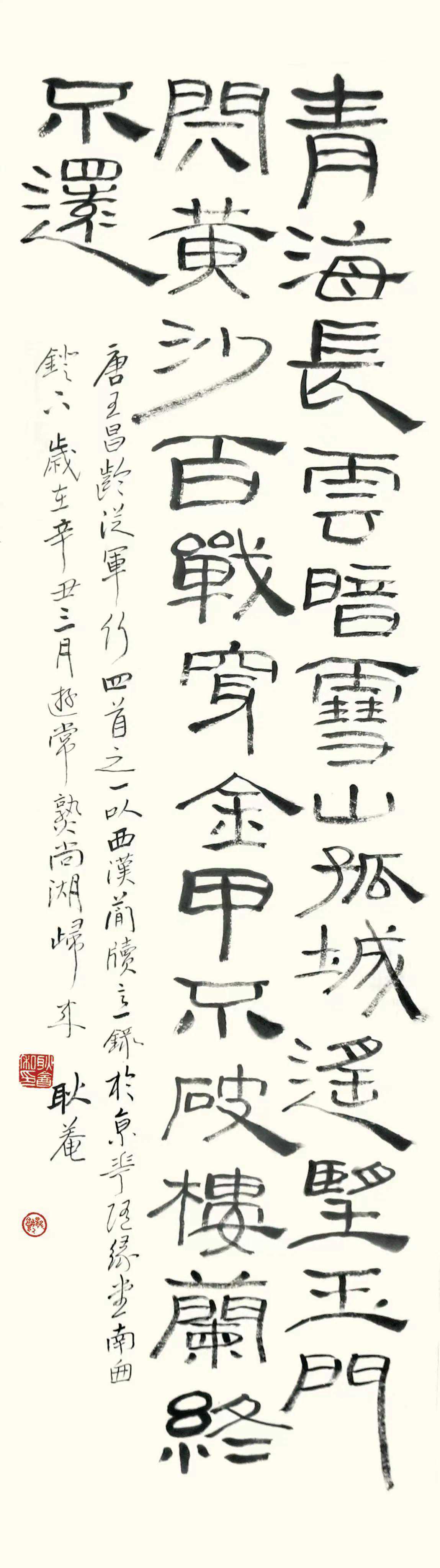 羿耿庵1959年生,受业于沙曼翁先生。曽在中国美术馆、香港科技大学、江苏省美术馆等地举办个人书法展20余场。2010年起定居北京,连续三年在京举办“羿耿庵书法篆刻艺术作品展”。2014年,在国家图书馆·文津书院创办“羿耿庵书法讲堂”,同年荣获中华慈善总会“慈善爱心书画家”荣誉称号。出版专著《篆书和隶书临创秘籍》,在各类报刊发表学术文章近百篇,多幅书法作品为国内外文博机构和收藏家收藏。2021年、2022年受邀在巜书法导报》开设《经典书法鉴赏与临创》系列专栏、巜砚边微语》系列专栏。