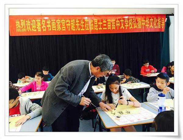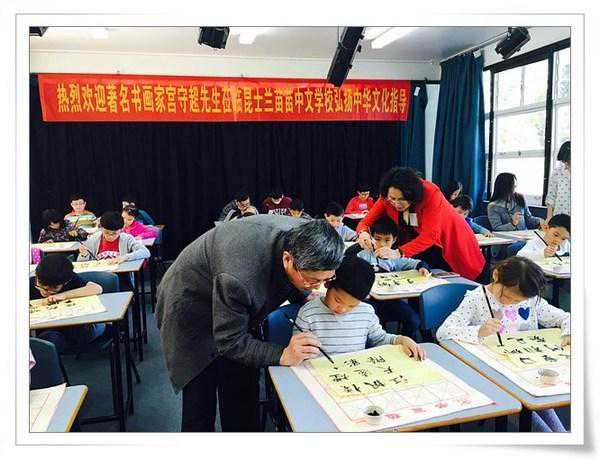 为弘扬中华传统文化,展示中华书法艺术魅力。近日,著名书画家宫守超先生应澳大利亚昆士兰州布里斯班市昆士兰苗苗中文学校邀请,为该校五个班级师生共160余人讲授书法课。