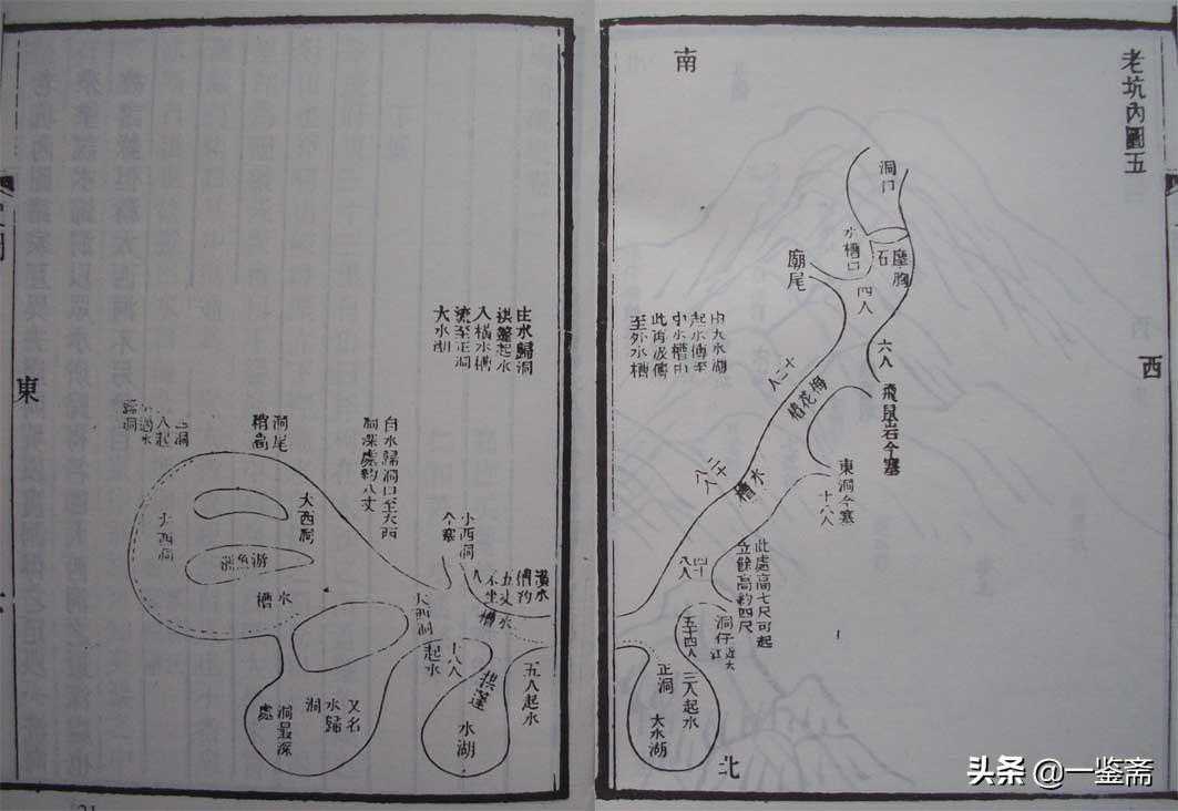水岩凡四洞,先东洞,次正洞,均居左;次小西洞,居右;最后为大西洞。东西以洞门所向言之。清初人记载,或以洞门所向言,或以洞所在地言,往往东西相反,左右异词。更有取两说杂揉之者,益错综不可究诘。今依砚史老坑内图述其次第,但证以何石卿砚辨所附黄香石图,亦微有不合。要之大体无甚差异,堪以据依。学者明此,庶于论砚诸书,不致迷惑。