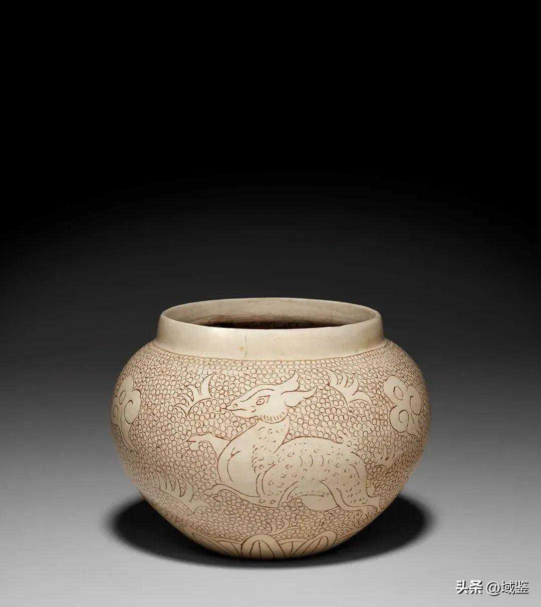 北宋磁州窯白釉珍珠地劃花鹿紋罐