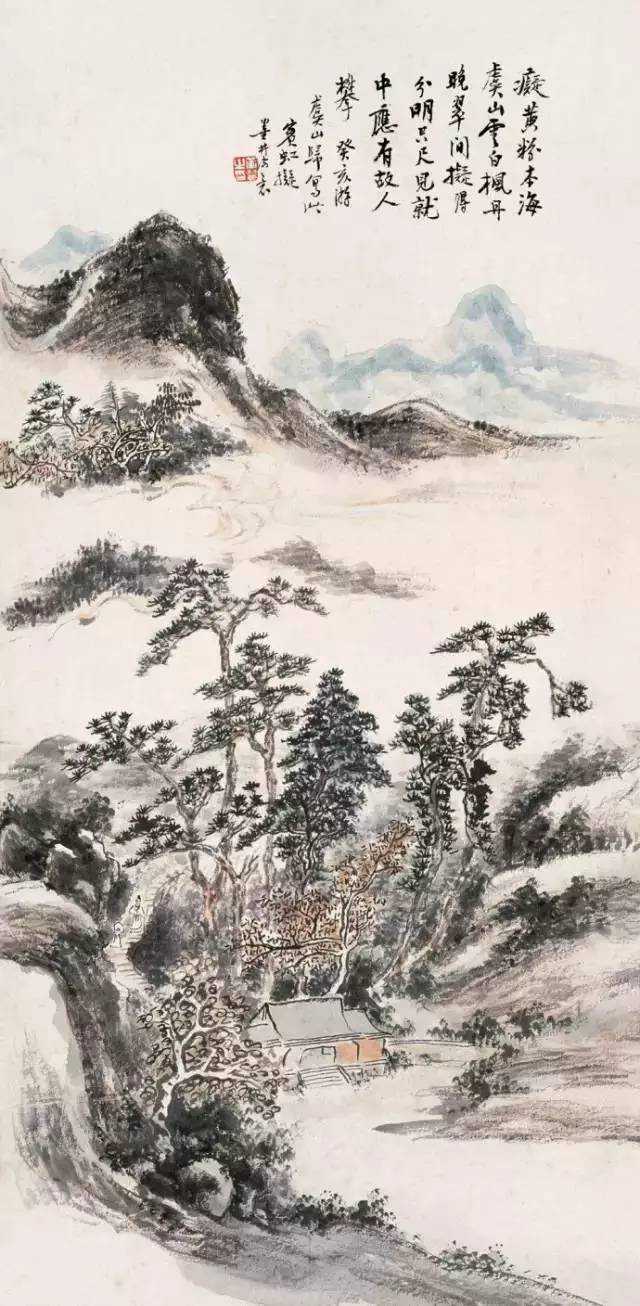 新安画派疏淡清逸的画风对黄宾虹的影响是终生的,六十岁以前是典型的“白宾虹”。六十岁以后,曾两次自上海至安徽贵池,游览乌渡湖、秋浦、齐山。江上风景甚佳,他起了定居之念。贵池之游在黄宾虹画风上的影响,便是从新安画派的疏淡清逸,转开学习吴镇的黑密厚重的积墨风格。以此为转机,黄宾虹开始由“白宾虹”逐渐向“黑宾虹”过渡。