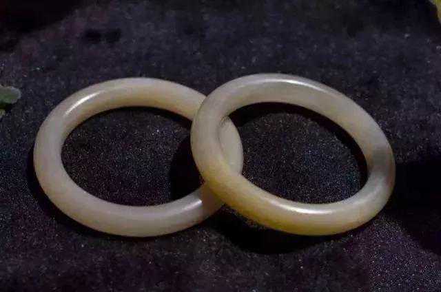 这种镯子可以上工也可以不上工,做成什么式样也不拘泥,因为本身就是绝品了,但是是否是一个玉胎里出来的这一点几乎无法鉴定,所以遇到这样的玉料,都是有声望的匠人手上做,一求保险,二来借工者以证明不是作假。