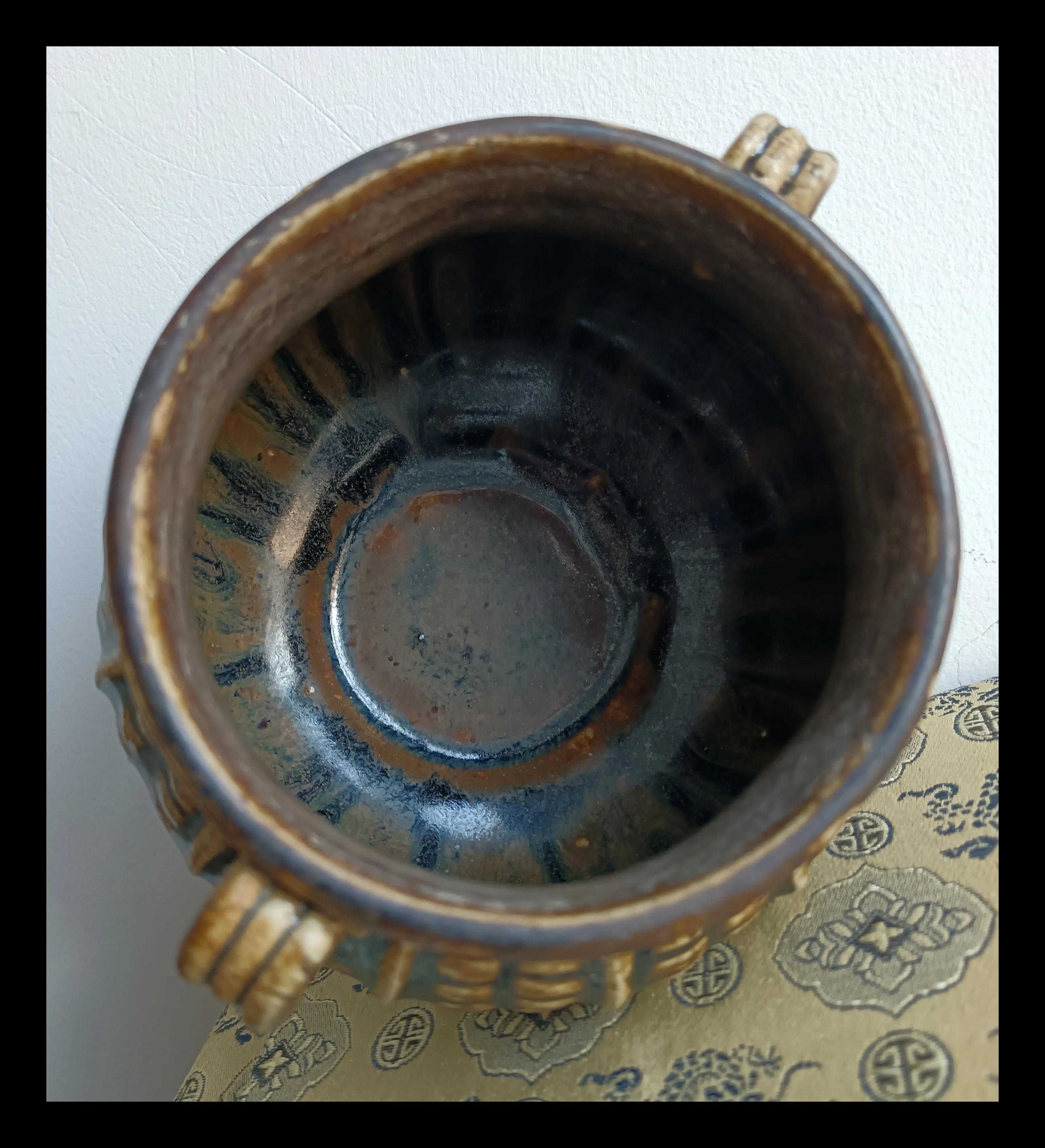 罐内施满釉,黑色流淌线几近匀等分布,色度深浅和谐,十足美感。