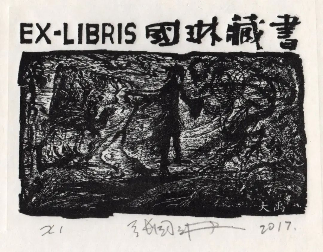 1989年创作的黑白木刻版画《山海经变局部》