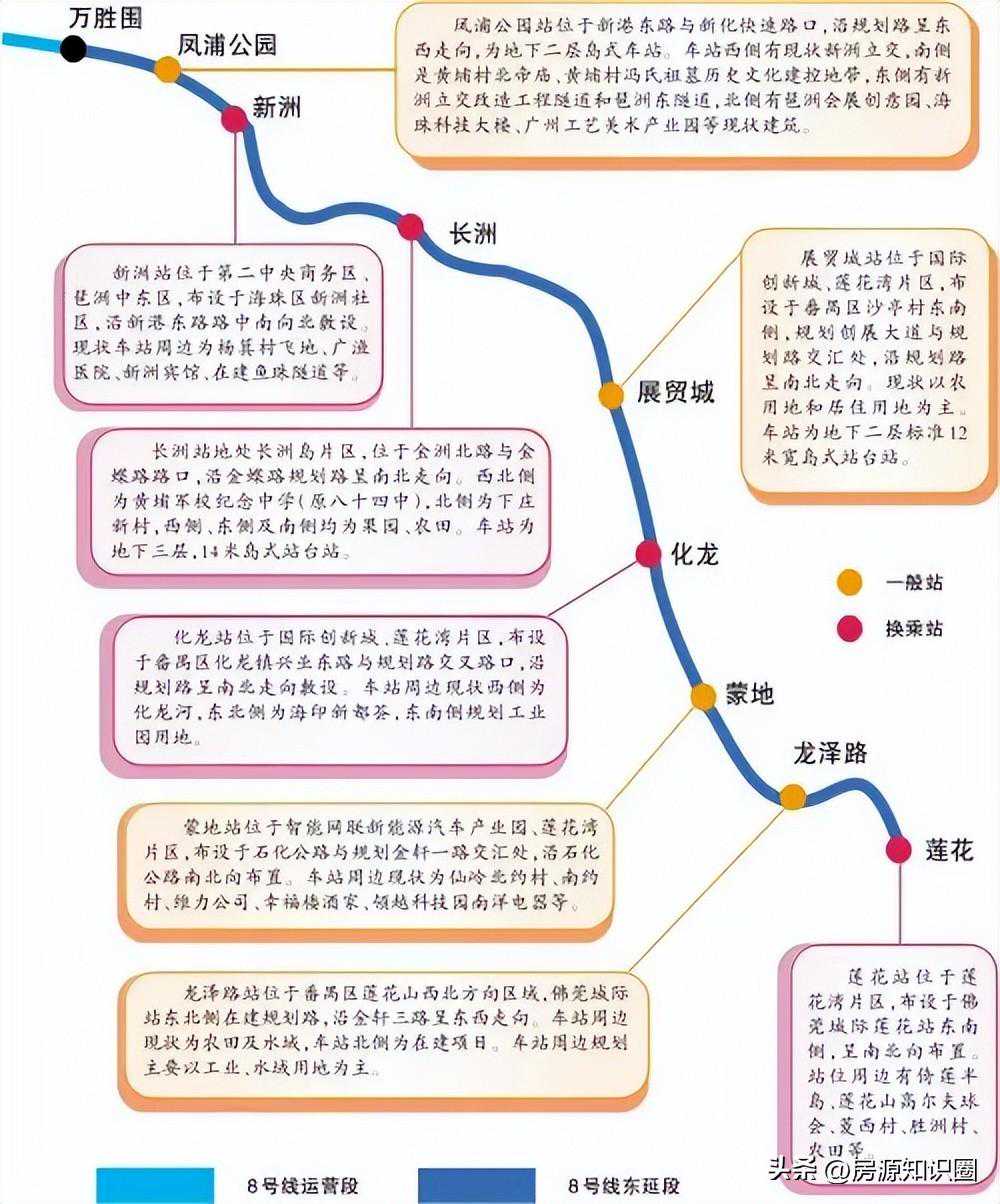 除以上8条在建地铁新线外,我们还注意到,8号线东延段(莲花-万胜围)也有新消息。该线路计划于年内开工,将串联番禺、黄埔、海珠三区,尤其填补了番禺化龙片区的地铁空白。