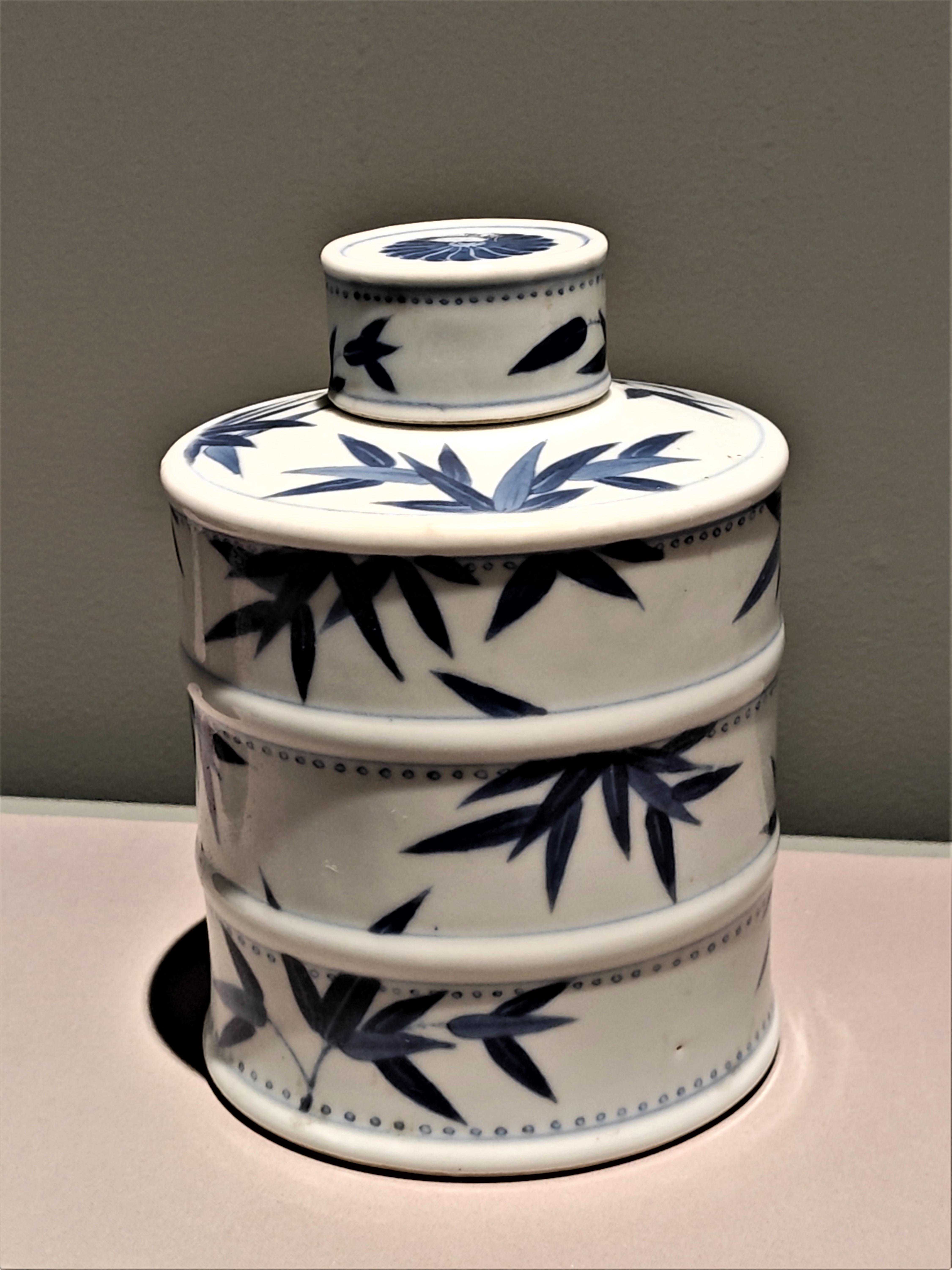 展览中还有来自英国、日本、俄罗斯的茶器精品,还有清代宫廷中使用和收藏的来自异域的茶器,以及由清宫造办处制作的外国风格的茶器。比如:故宫博物院收藏的日本银鸢尾花纹茶具套装、法国蓝釉描金寿字纹茶具、俄罗斯银刻花双耳六足盘,以及维多利亚与艾伯特博物馆收藏的“中国风”茶具、英国沃克斯豪尔瓷厂烧造的软瓷印花青花庭院图茶叶罐、德国麦森瓷厂烧造的红陶模印花卉纹壶、珐琅彩描金人物图杯及杯托等。