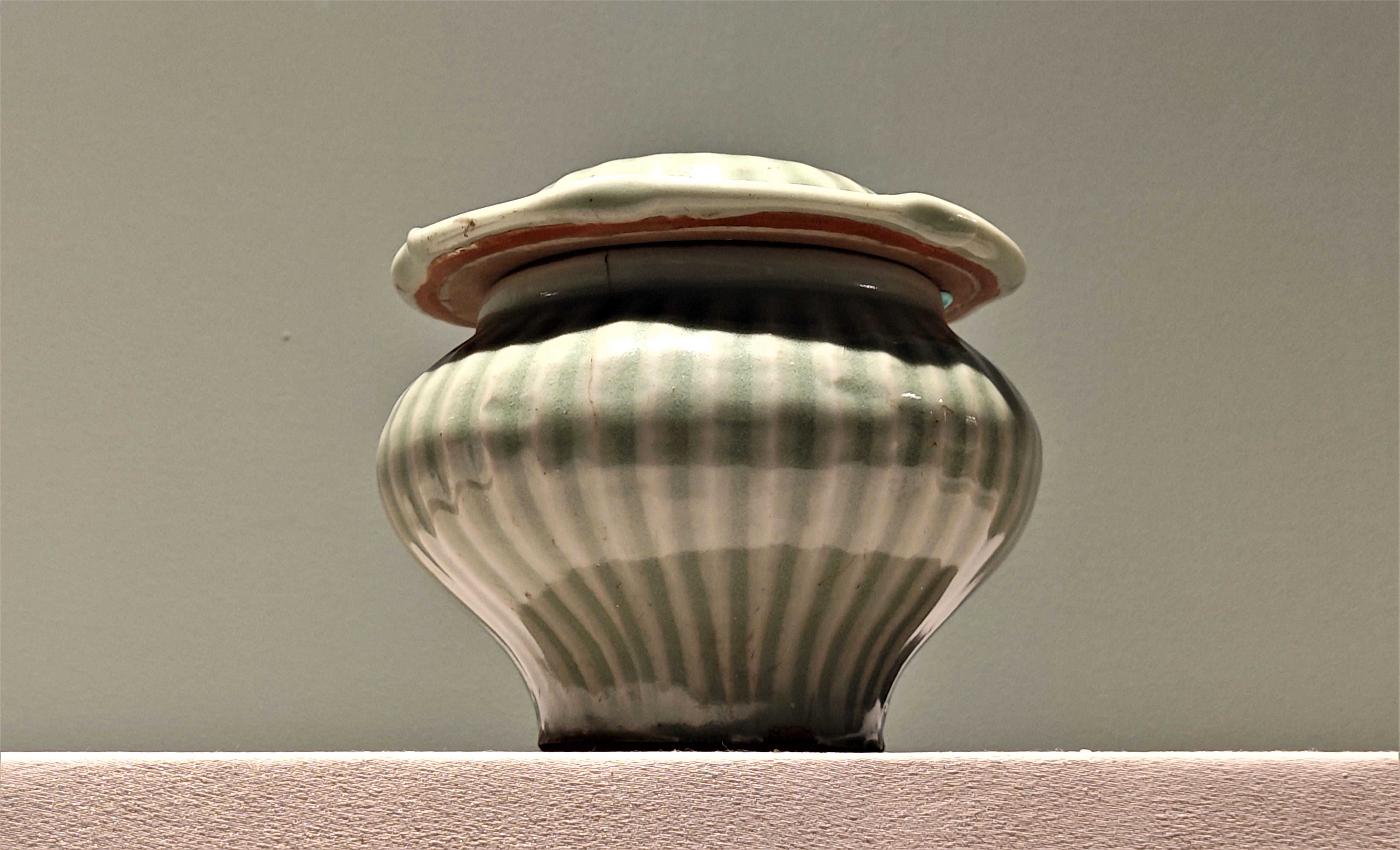 至宋代,“斗茶”之风兴起,在当今影视剧中得见。茶艺与茶具相比前朝更是讲究。茶的色香味,斗茶时的操作技巧,击拂茶汤后的呈现效果和茶沫在盏壁的存留时间,都是斗茶考评的重点。斗茶崇尚纯白茶色,因此能让白色茶墨充分呈现的黑釉盏备受人们推崇。其中,以福建建窑烧造的建盏最为著名。青釉,青白釉茶盏造型相近,也十分流行。建盏的形状口大底小,犹如一个漏斗,足够容纳翻滚而入的汤花;盏壁较厚,以维持恰到好处的温度,保证茶水可以“久热不冷”。阳光下透出的纹路如毛发细密,有兔毫斑,鹧鸪斑等不同品类。