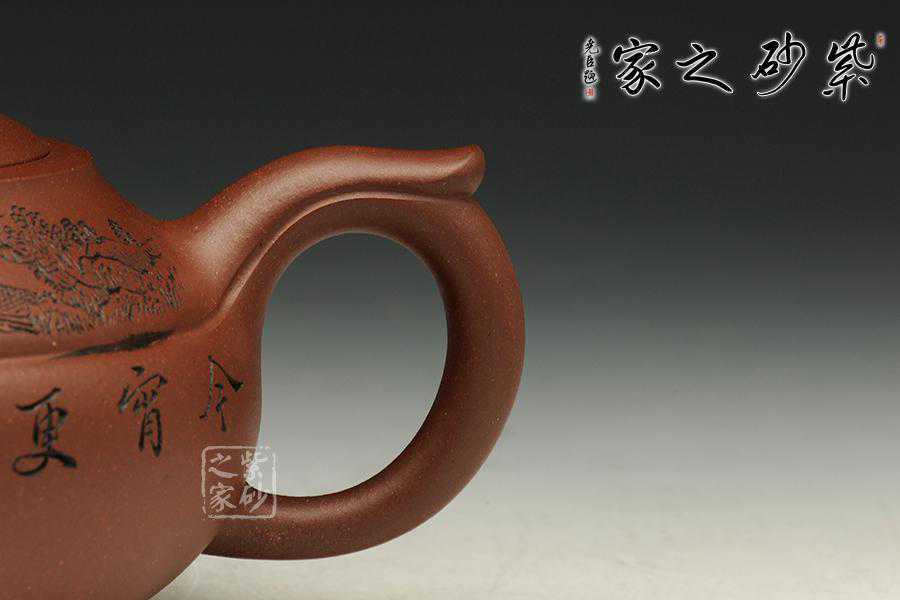 精选原矿朱泥,胎骨坚硬而沉实,色泽朱红略泛桔光,温润透明质感之佳