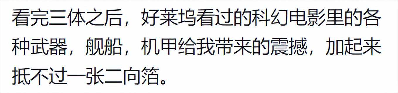 这么说吧,三体小说,直接摧毁了好莱坞式大片的影响。从根本上否定了美式科幻大片大场面的意义说实话,我看到水滴的时候,西方的科幻在我眼里就是下乘了,原来还有如此朴实无华的星际级武器。二向箔什么的往后稍稍。