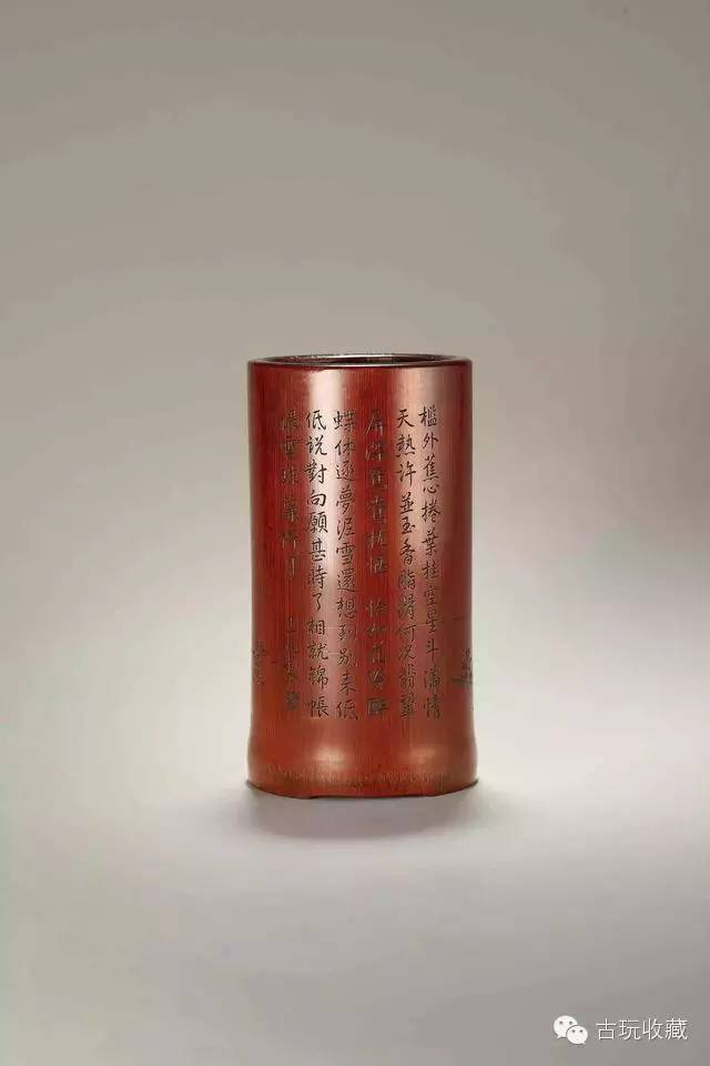 竹刻诗文笔筒