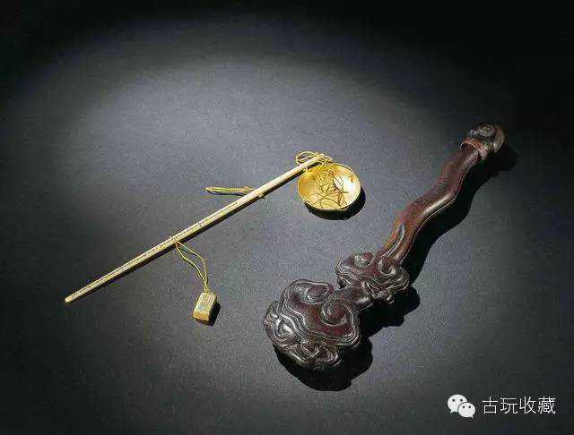 竹雕灵芝盒配金胎“称心如意”象牙秤