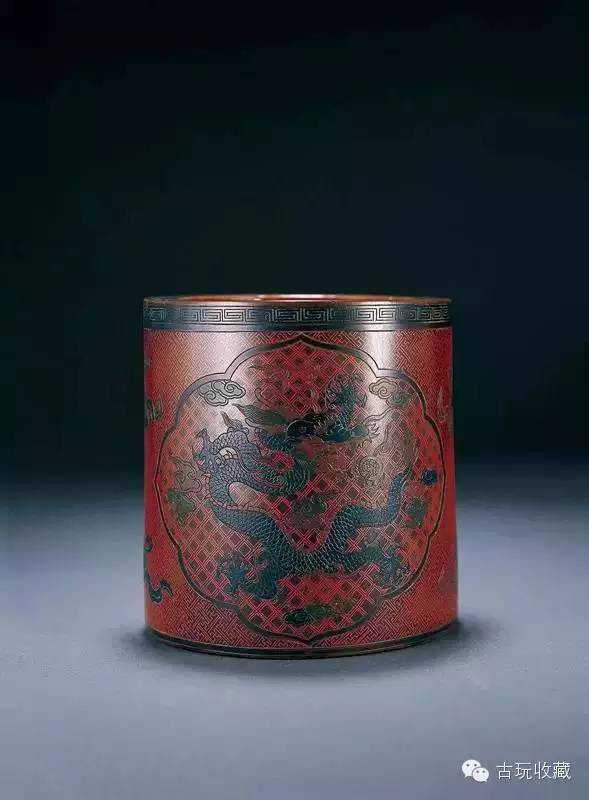 竹雕填漆龙纹笔筒