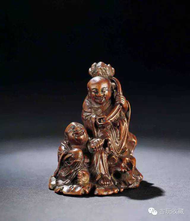 竹根雕和合二仙山子