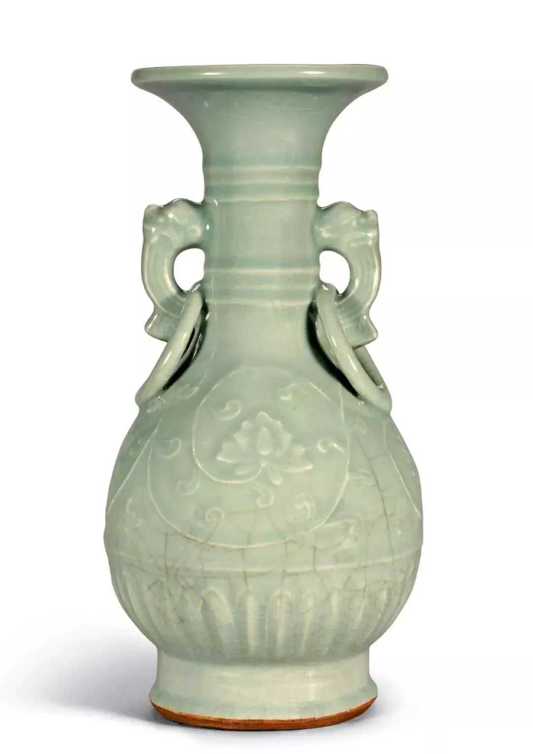 元龙泉青釉牡丹纹双耳连环瓶(3-5万)