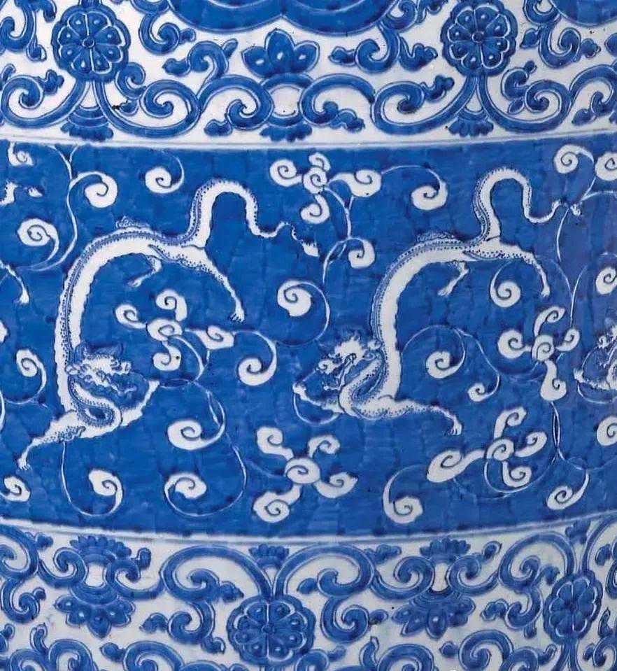 清康熙青花穿花螭龙纹撇口大瓶(6-8万)