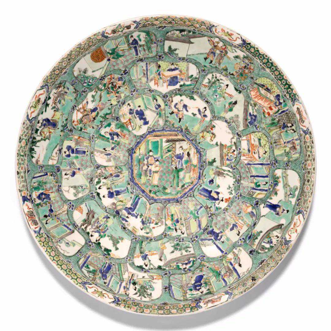 清康熙五彩开光西厢记图大盘(3-5K)