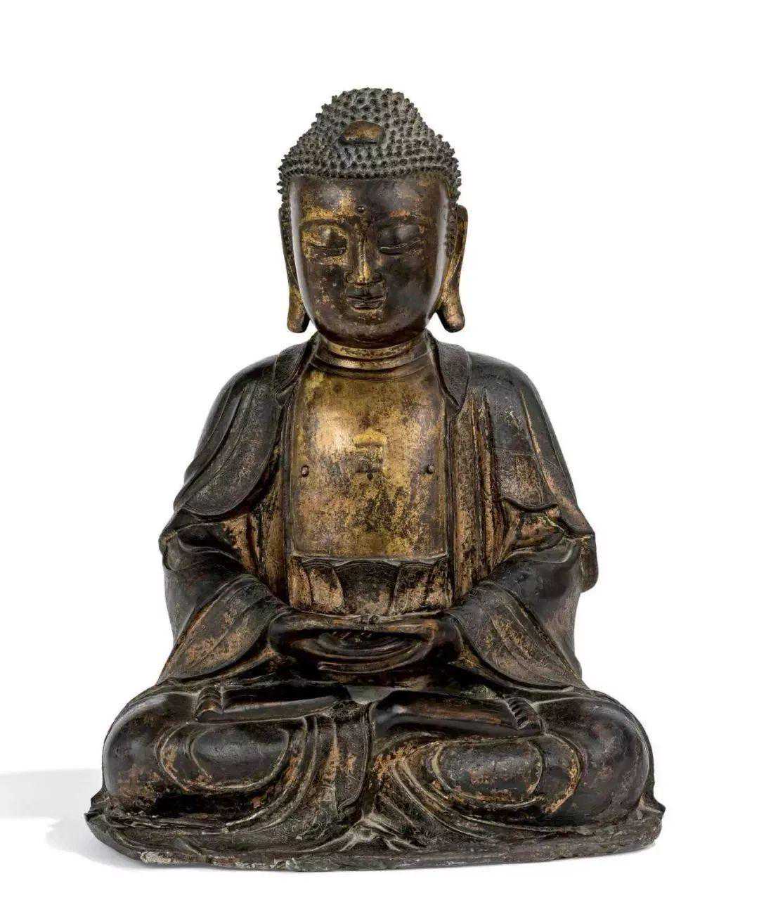 明16/17七世纪铜局部鎏金阿弥陀佛坐像(3-5万)