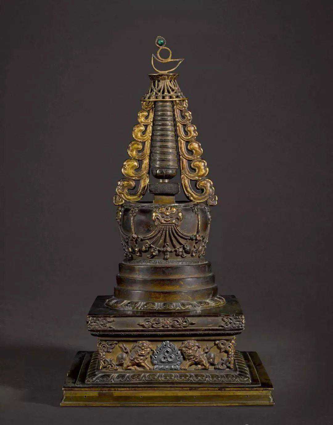 清18世纪铜局部鎏金嵌宝佛塔(3-5万)