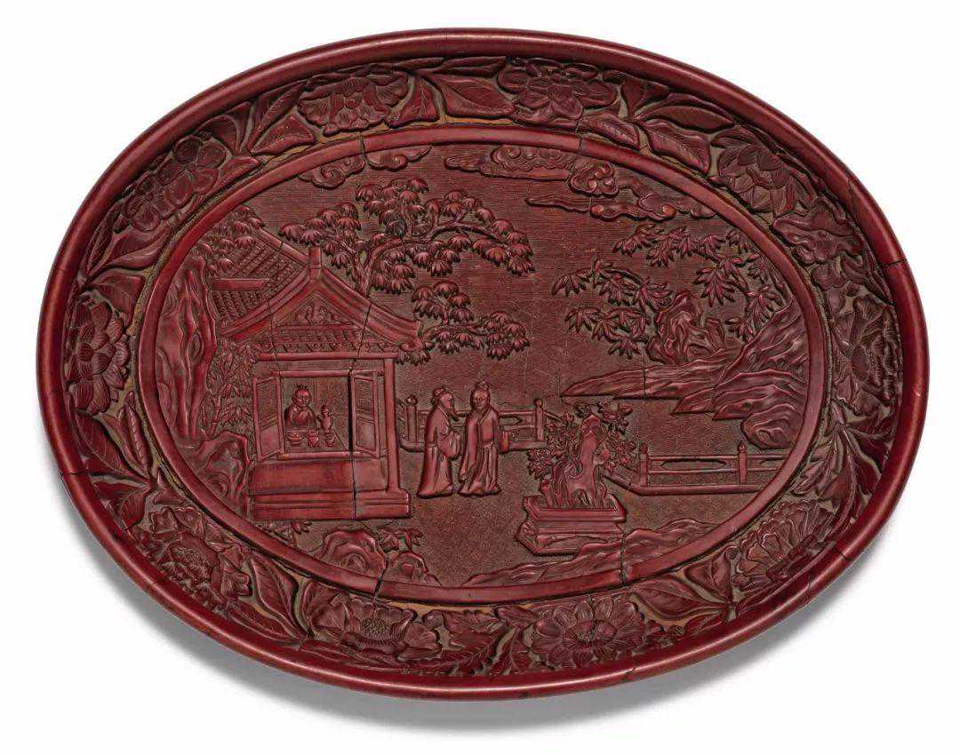 明永乐剔红赏石图椭圆盘(12-15万)