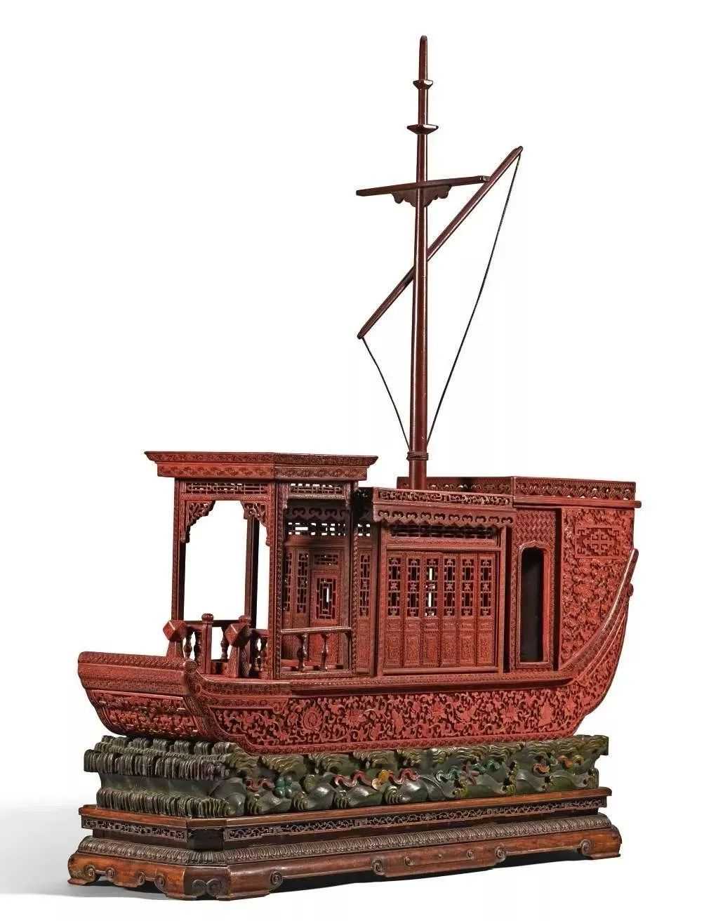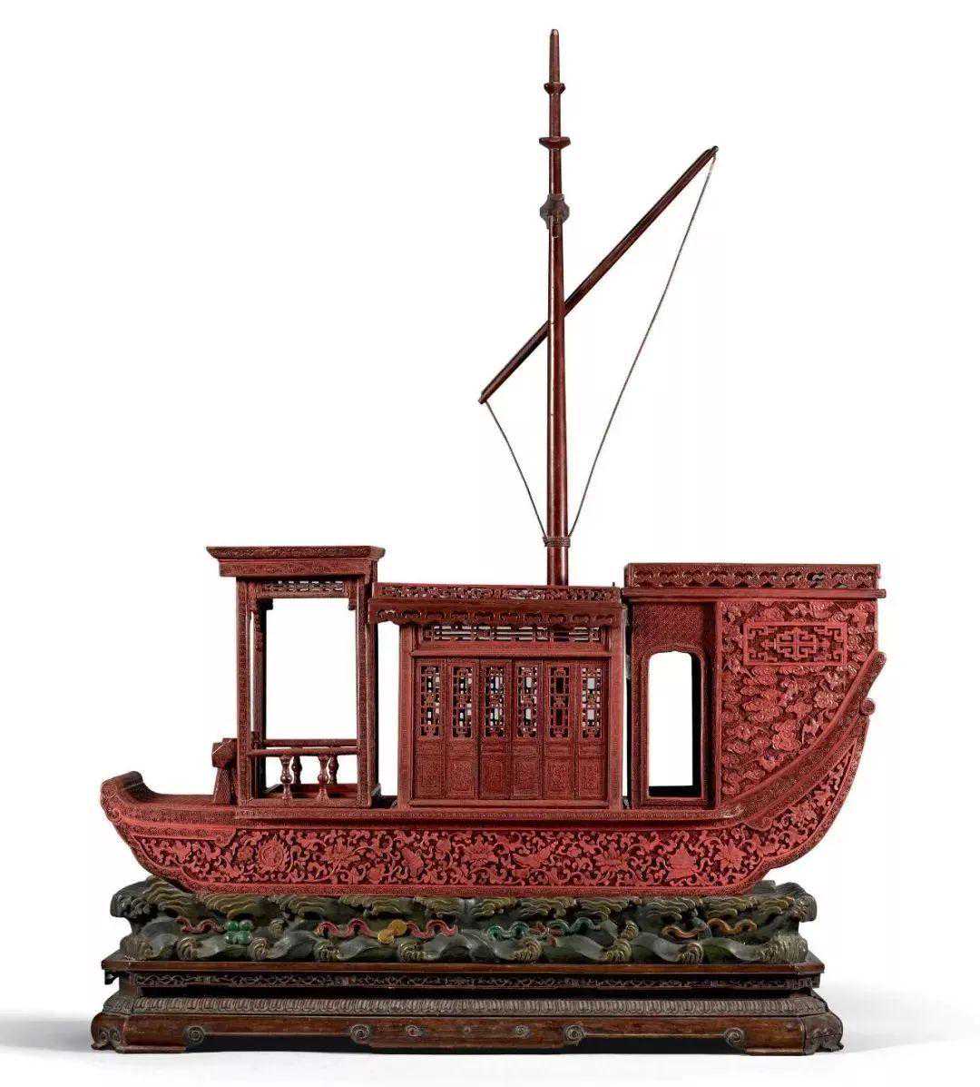 清乾隆剔红八吉祥纹画舫式香盒(5-7万)