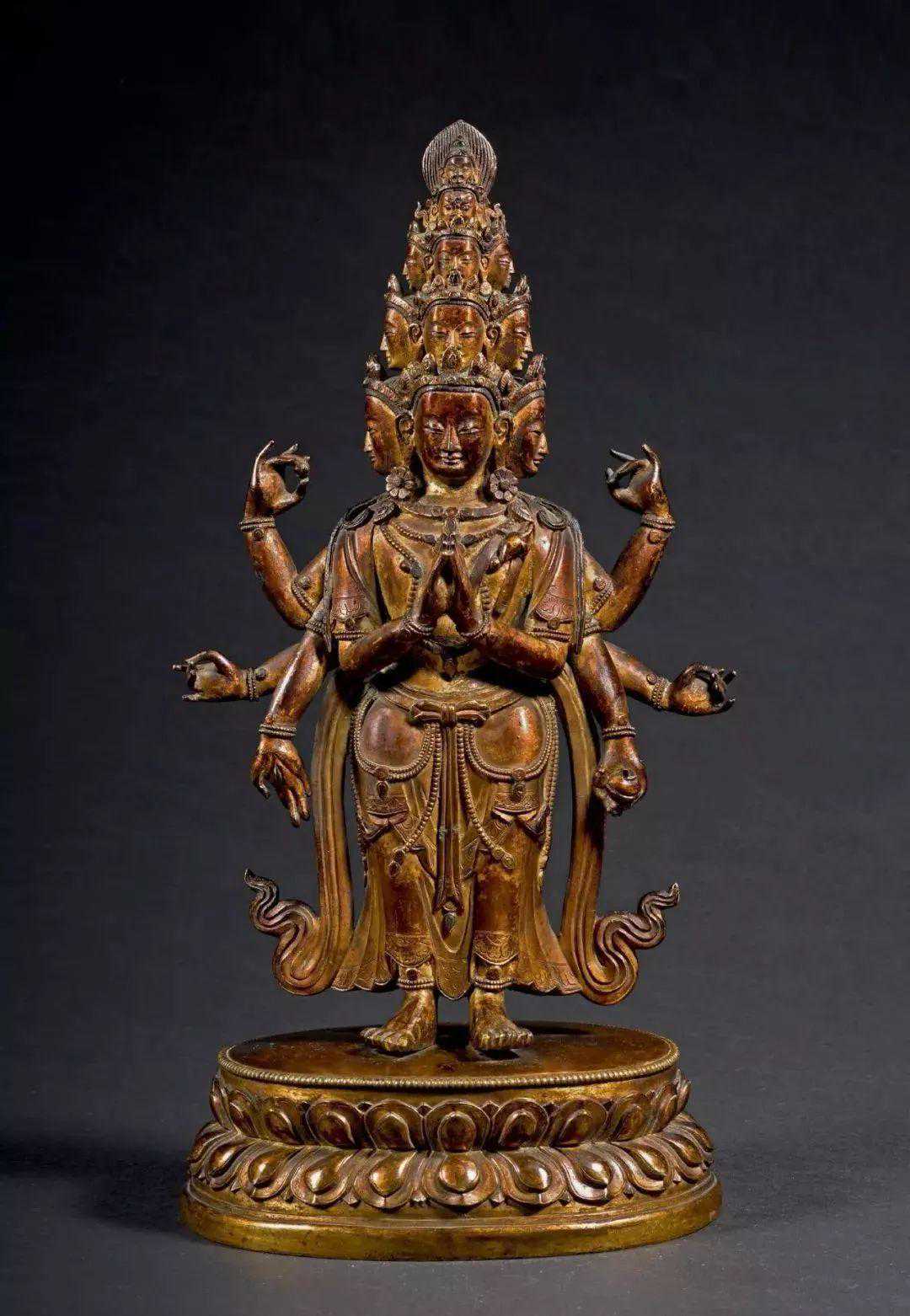 清18世纪鎏金铜十一面观音立像(1.5-2.5万)