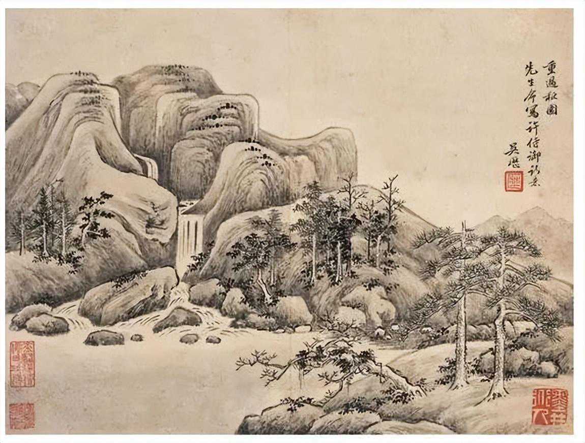 吴历流传下来的作品较多。仅上海博物馆收藏书画就达32幅,含五、六个大幅精品佳作,如《雨歇遥天图》《葑溪会琴图》《槐策堂图》等。北京故宫博物院更是收藏丰厚,如43岁时作的《松壑鸣琴图轴》取法王蒙,景色郁茂,布局深远,皴法细密,积墨厚重,阴面多用重墨,受光部分作“阳面皴”,增强了山石的立体感,反映了画家成熟后的典型风格。