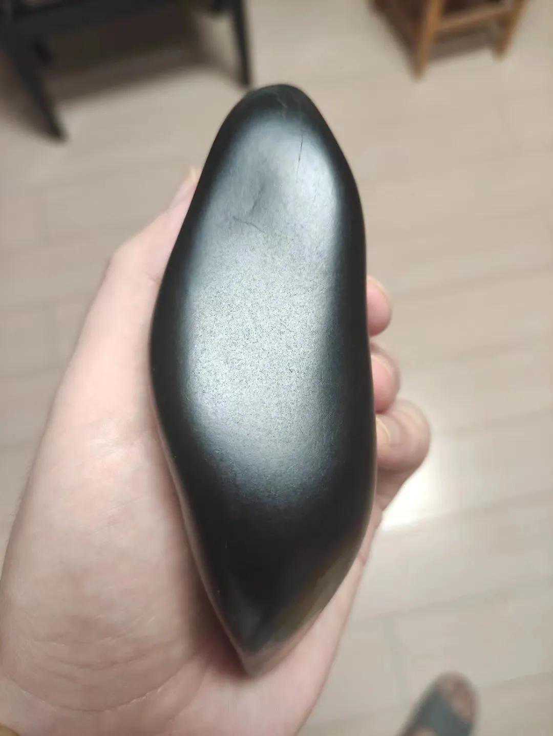 2、质纯。纯正的墨碧玉看起来几乎呈现黑色,观感漂亮,而且大多数都是籽料,所以质地细腻坚韧,油性极佳,毛孔非常细,十分纯净,可以说是籽料里面最细最油的,俗称黑羊脂。打灯不透明,如果用强光电筒从背后照射,有非常清晰的绿色光圈会显现,但很难看到新疆和田玉的内部特征,但属于比较纯正的墨绿、翠绿颜色。